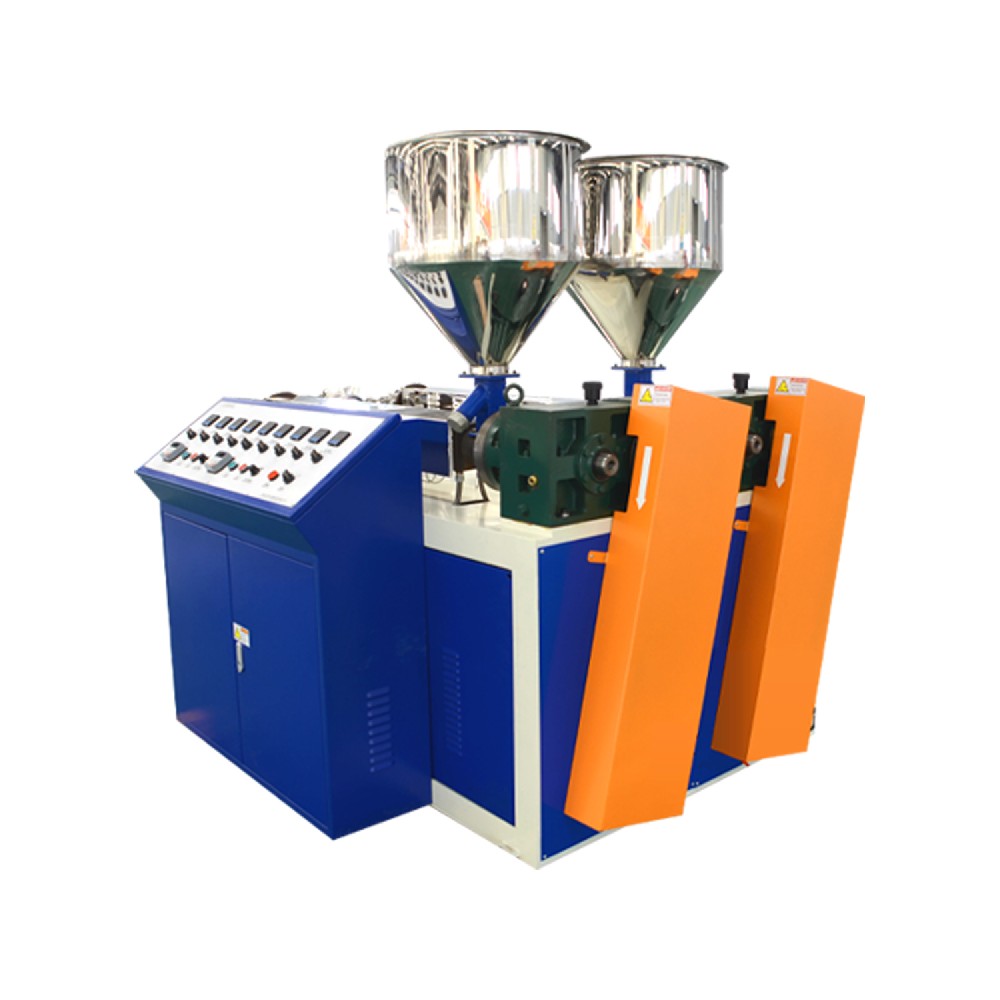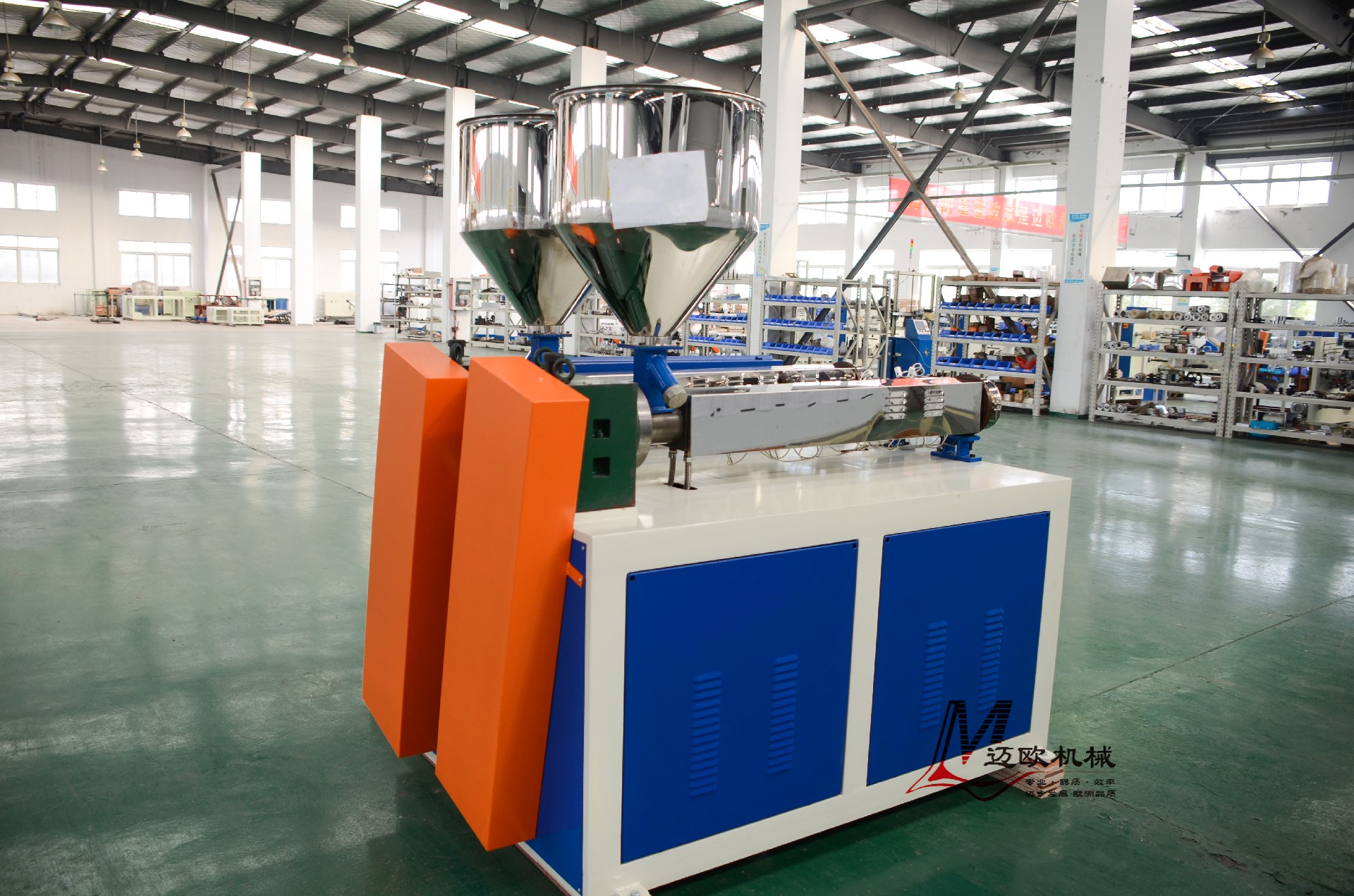 ML12A双色鸳鸯吸管挤出机简介:ML12A双色鸳鸯吸管挤出机组由:挤出机、机头、冷却定型装置、牵引切割装置、理管输送装置(选配)等部分组成,生产双拼色的鸳鸯吸...