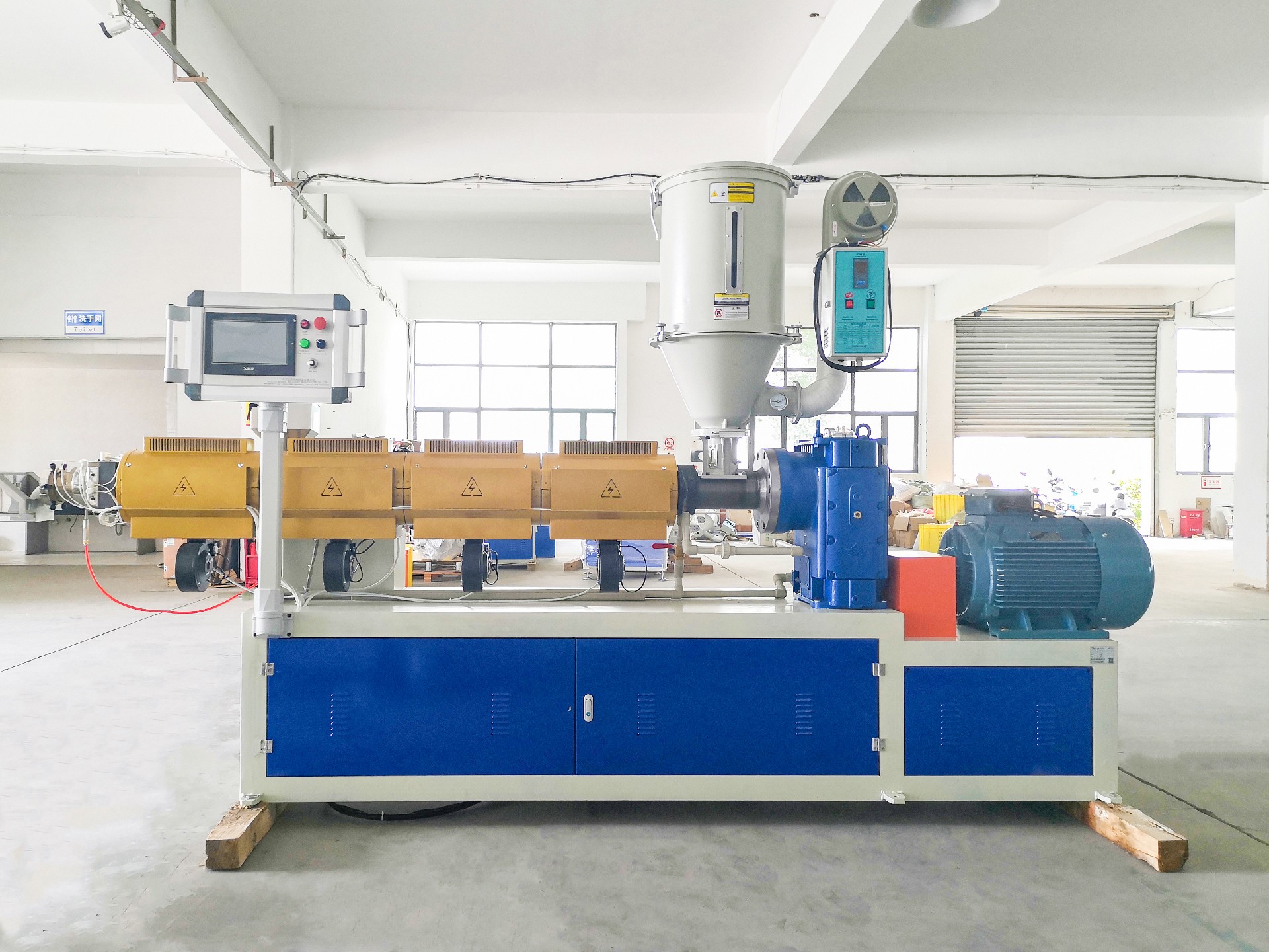 ML12 PLA双色吸管挤出机组简介:ML12-50 PLA双色吸管挤出机组由:PLA挤出机、机头、冷却定型装置、牵引切割装置、理管输送装置(选配)等部分组成,...